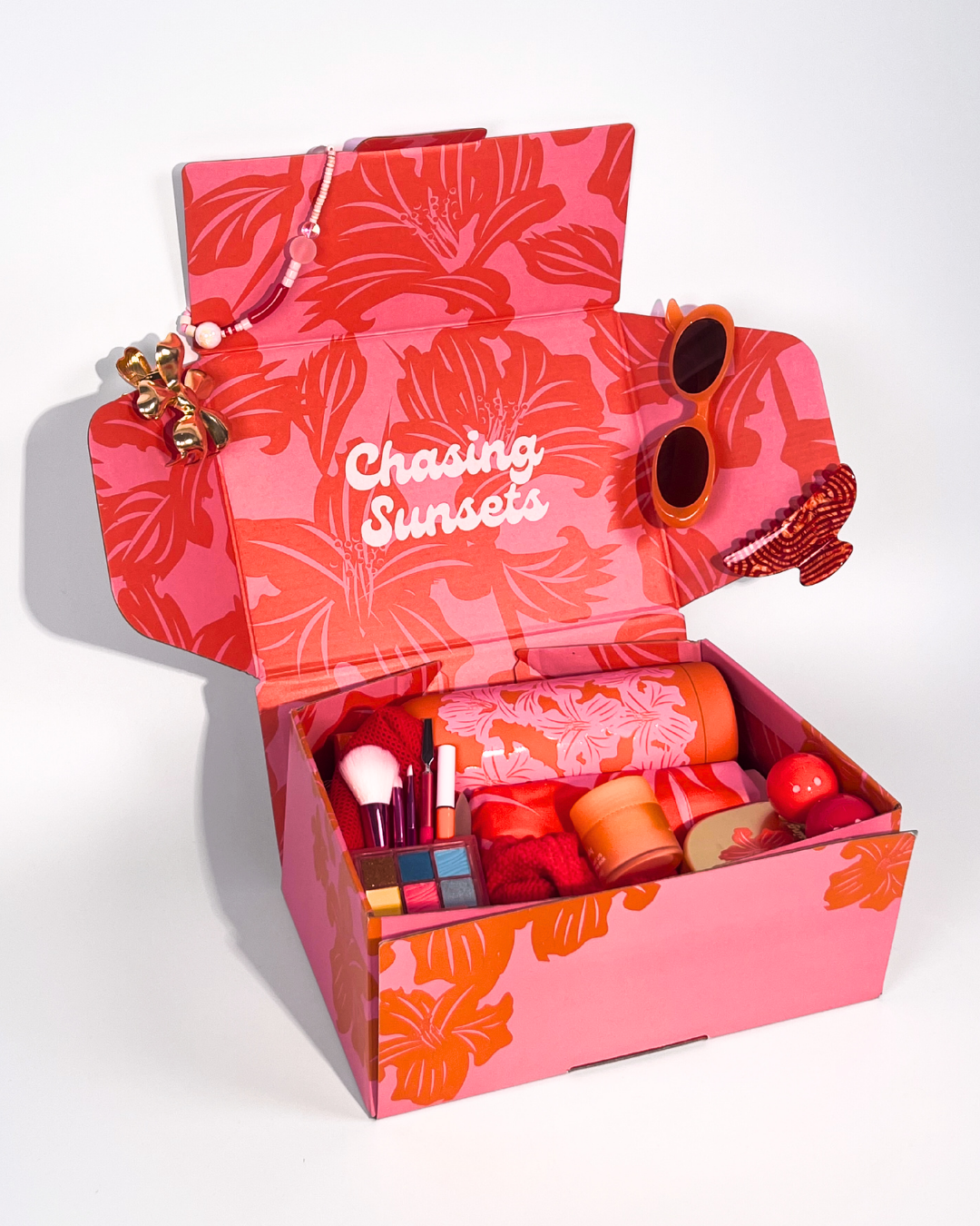 Our latest subscription box celebrates the vibrant spirit of the season and features items inspired by the Hibiscus Bay trend. With sculptural florals and playful tropical prints, each box is curated for those who love adventure—think festival days and market strolls with a dash of whimsy!